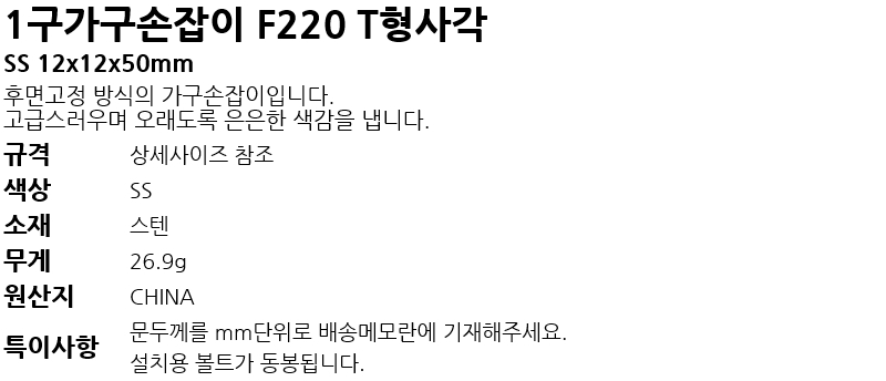 1±¸°¡±¸¼ÕÀâÀÌ F220 TÇü»ç°¢ SS 12mm