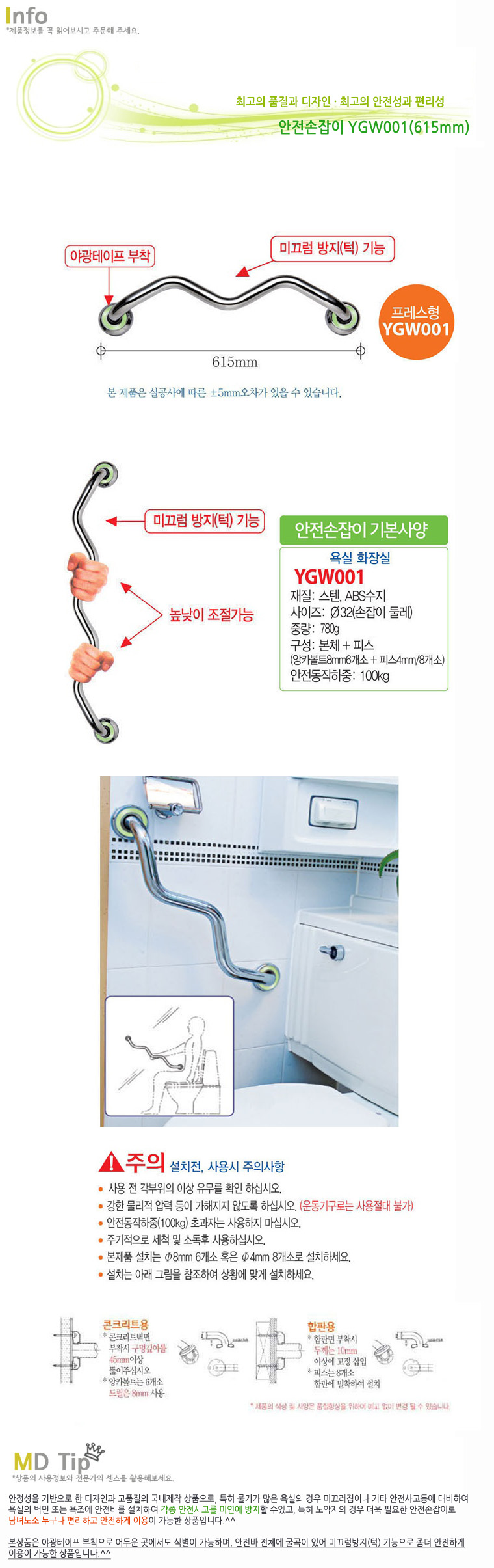 ¾ÈÀü¹Ù ¾ÈÀü¼ÕÀâÀÌ ±¼°îÇü ¹Ì²ô·³¹æÁö YGW001 615mm ¾ß±¤