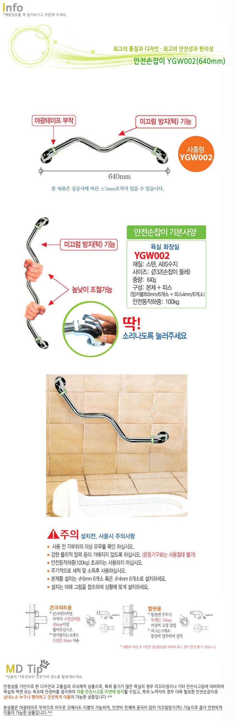 ¾ÈÀü¹Ù ¾ÈÀü¼ÕÀâÀÌ ±¼°îÇü ¹Ì²ô·³¹æÁö YGW002 640mm ¾ß±¤