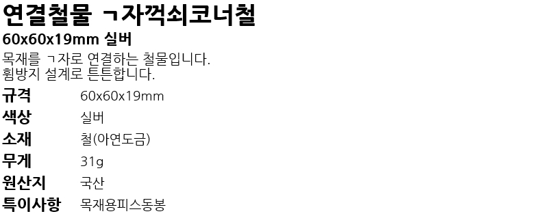 ¿¬°áö¹° L²©¼èÄÚ³Êö 19x60x60mm ½Ç¹ö