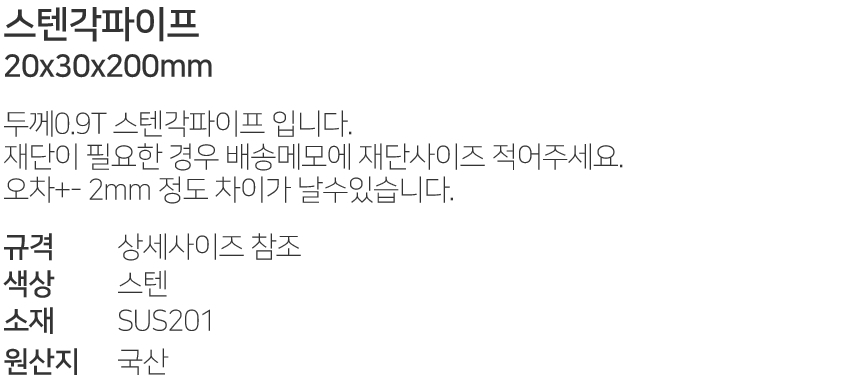 ½ºÅÙ°¢ÆÄÀÌÇÁ20x30x200mm