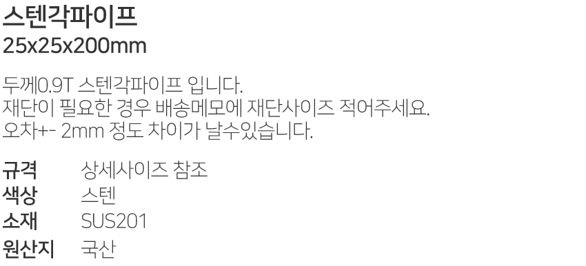 ½ºÅÙ°¢ÆÄÀÌÇÁ25x25x200mm