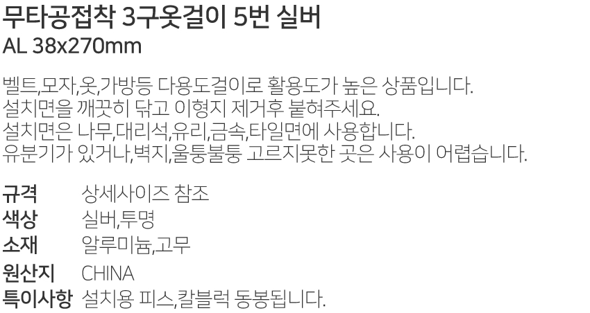 ¹«Å¸°øÁ¢Âø 3±¸º®¿Ê°ÉÀÌ 5¹ø AL 38x270mm