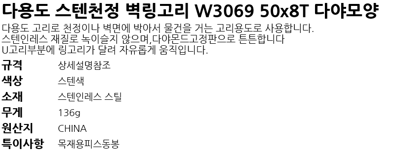 ´Ù¿ëµµ ½ºÅÙõÁ¤ º®¸µ°í¸® W3069 50x8T ´Ù¾ß¸ð¾ç
