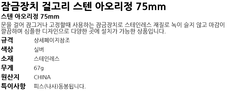 Àá±ÝÀåÄ¡ °É°í¸® ½ºÅÙ ¾Æ¿À¸®Á¤ 75mm