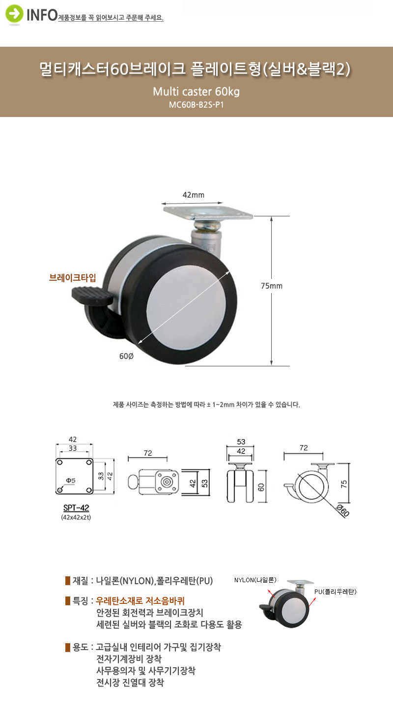 ǰ ¸í : ¹ÙÄû/¸ÖƼij½ºÅÍ60¨ªºê·¹ÀÌÅ© Ç÷¹ÀÌÆ®Çü(½Ç¹ö&ºí·¢)/MC60B-B2S-P1
