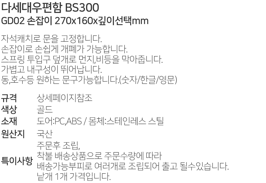 ´Ù¼¼´ë¿ìÆíÇÔBS300 GD02¼ÕÀâÀÌ270x160mm±íÀ̼±ÅÃ
