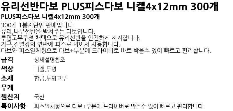 À¯¸®¼±¹Ý´Ùº¸ PLUSÇǽº´Ùº¸ ´ÏÄÌ4x12mm 300°³