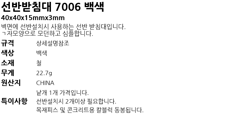 ¼±¹Ý´ë 7006 ¹é»ö 40x15mmx3mm