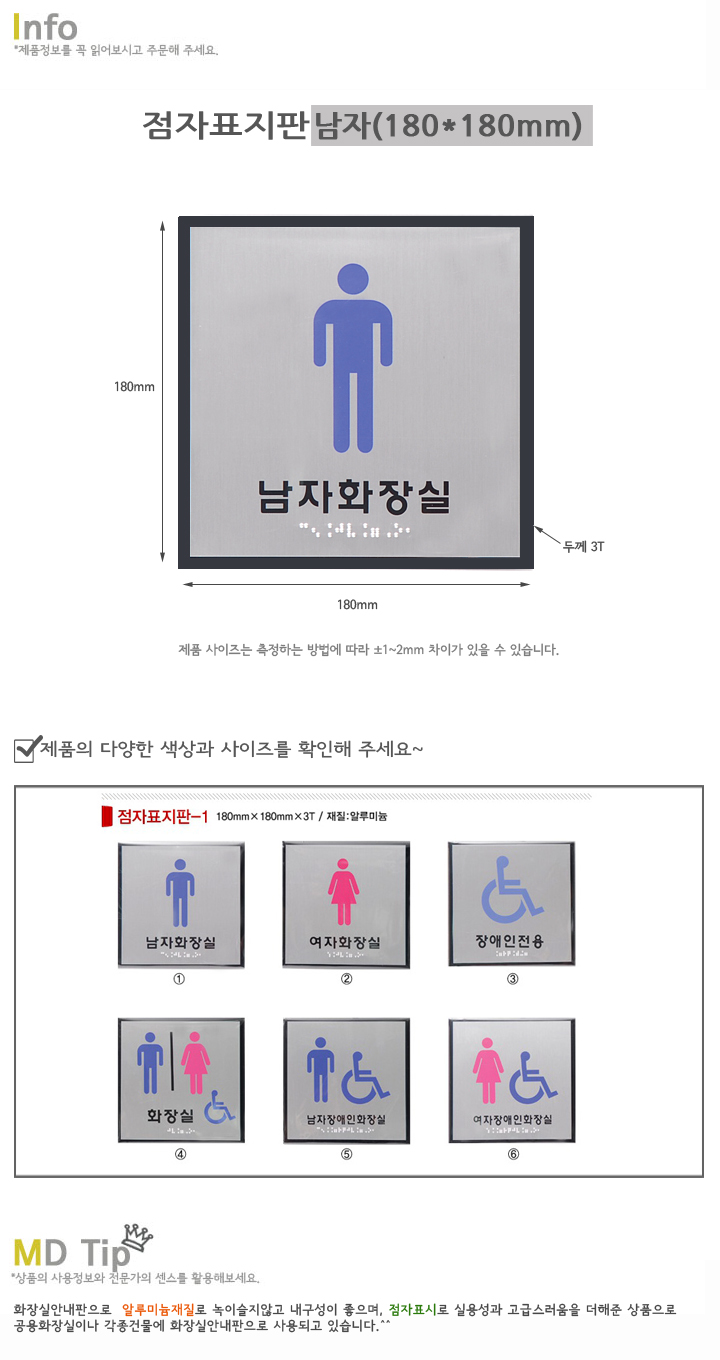 ǰ ¸í : ÈÀå½Ç¾È³»ÆÇ/(1)Á¡ÀÚÇ¥ÁöÆÇ/³²ÀÚ(180*180mm)