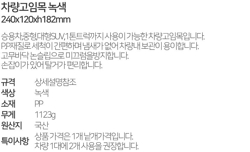 Â÷·®°íÀÓ¸ñ ³ì»ö 240x120xh182mm