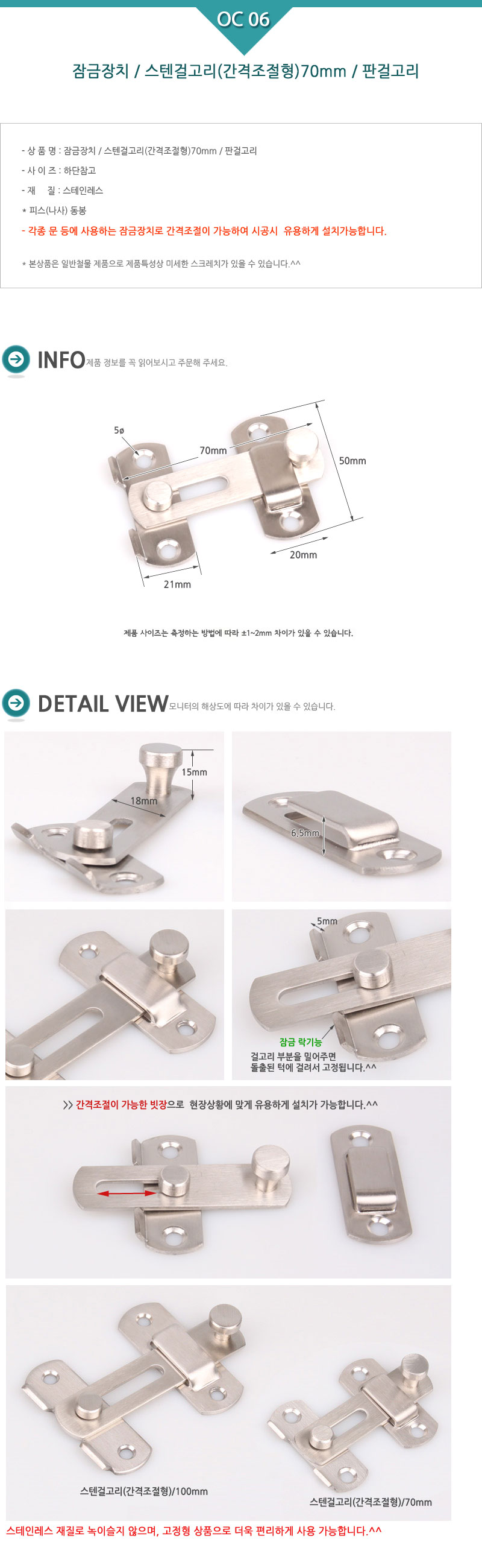 OC06.½ºÅÙ°É°í¸®(°£°ÝÁ¶ÀýÇü)70mm/ÆÇ°É°í¸® (+2,000¿ø)